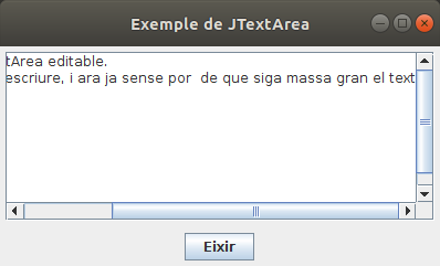 L'única dificultat és si el text és tan gran que no cap en el JTextArea. Aleshores ens vindrien bé unes barres de desplaçament (ScrollBars)