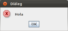 JOptionPane.showMessageDialog(this, "Hola", "Diàleg",JOptionPane.ERROR_MESSAGE)