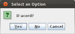 showConfirmDialog() ens permet mostrar un diàleg amb un comentari i uns botons de Sí, No , Cancel·lar. Aquest mètode torna un valor, que serà l'opció triada.