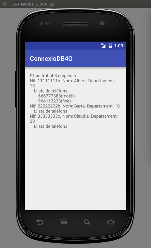 El programa és molt senzill. Si no existia el directori databases el crea (per evitar problemes) i construeix la Base de Dades. Si ja existia, assumeix que està creada la Base de Dades, i visualitza el seu contingut.