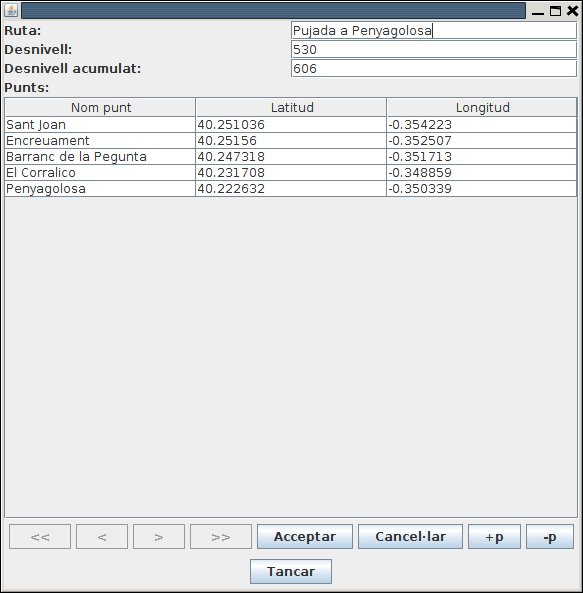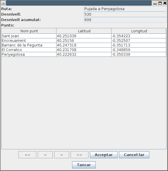 - En cas de cancel·lar, no es fa la modificació, i senzillament s'ha de tornar a visualitzar la ruta actual (com no s'ha fet cap canvi, apareixeran les dades anteriors)
