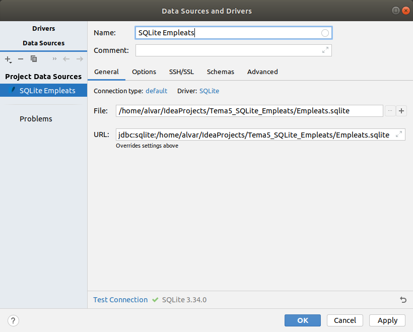 I observeu que en aquest exemple hem optat per incorporar el Driver directament, ja que el teníem des del tema passat. Podríem haver optat també per incorporar-lo a l'estil Maven, que seria senzillament incorporar en el fitxer pom.xml en l'apartat de <dependencies> la següent. Atenció: si ja heu incorporat el Driver de PostgreSQL al projecte, no cal que fey el que va a continuació