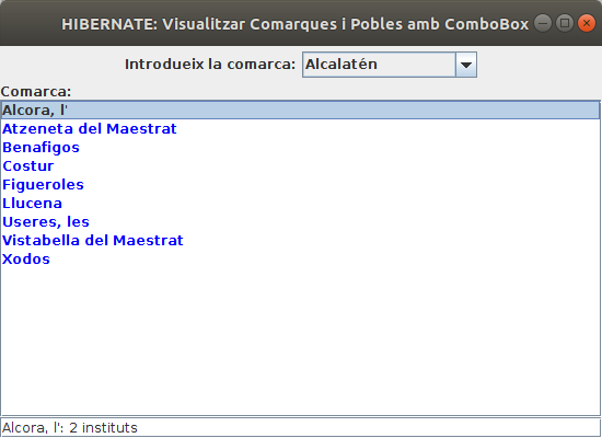 setTitle("HIBERNATE: Visualitzar Comarques i Pobles")