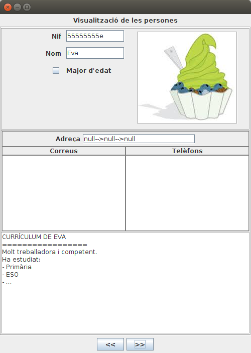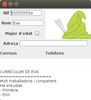 Per últim intentarem posar totes les dades, incloent la foto en una aplicació gràfica. Només mostrarem les dades de Eva, i així podrem veure la foto.