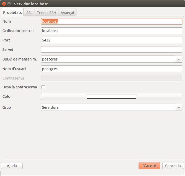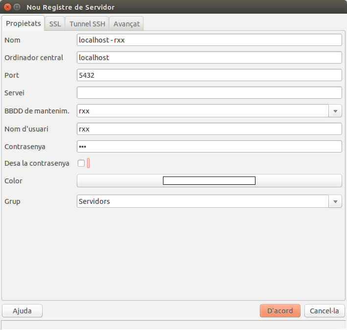 Haureu de crear-vos una connexió com al superusuari postgres , amb la contrasenya proporcionada en el moment de la instal·lació