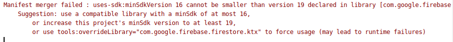 que com es veu és molt fàcil d'arreglar: senzillament és pujar el minSdkVersion de 16 a 19 en el build.gradle de la app
