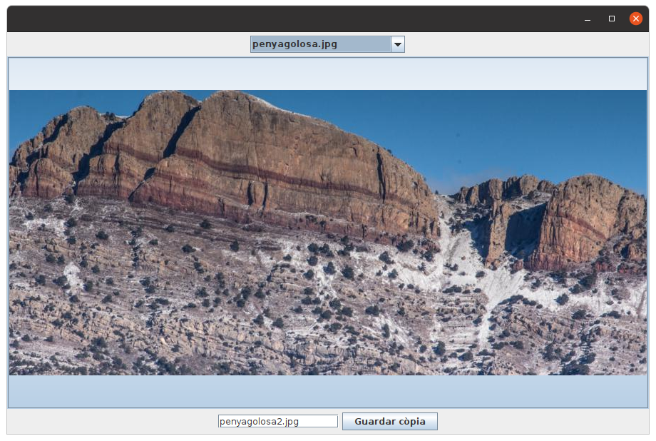 - Ens guardarem els noms de les imatges en un JComboBox. I per a visualitzar la imatge, en compte d'un JLabel utilitzarem un JButton, així la imatge quedara centrada tan horitzontal com verticalment.