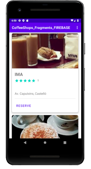 Partirem del mateix exemple utilitzat en l'Annex d'Android, CoffeeShops_Fragment, i ara adequarem les dades a l'estructura de Firebase CloudFirestore, recordant que les imatges dels cafès estaran guardades en Cloud Storage. Aquesta és l'estructura de les dades: