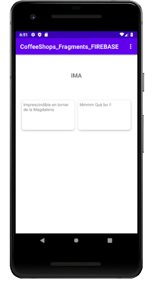 - Ho definim com a Serializable per a poder passar tot l'objecte del primer fragment al segon, així si s'ha de visualitzar una altra vegada la imatge, ja la tenim disponible. Si només s'ha de visualitzar el nom del cafè, a banda dels seus comentaris, no faria falta passar tot l'objecte, només el nom.