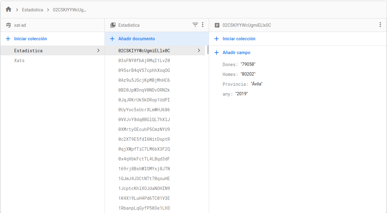 Farem una aplicació per a agafar unes dades corresponents a unes estadístiques guardades en Realtime Database de Firebase, concretament en la següent aplicació: