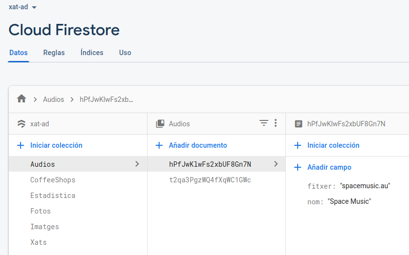 - Connecteu a la Base de Dades Firebase abans esmentada