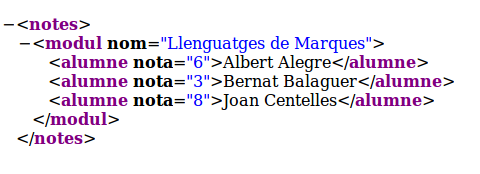 El resultat serà el següent fitxer notes.xml (a banda que també eixirà per l'eixida estàndar):