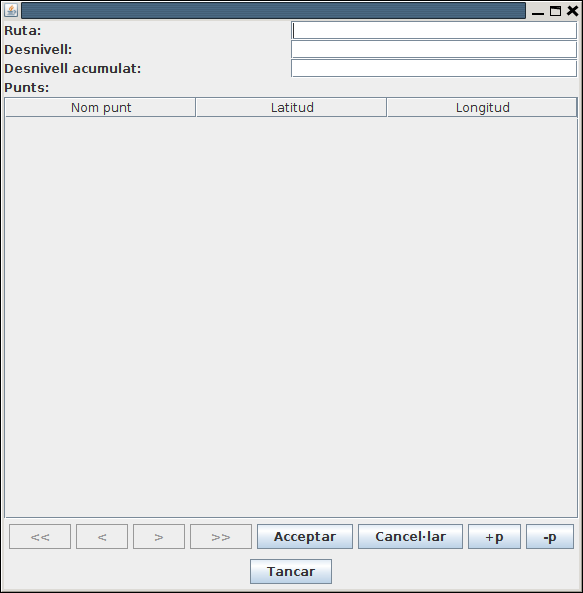 - Per a introduir nous punts, es podria posar un botó per a afegir una nova línia al JTable, i un altre per a llevar una línia