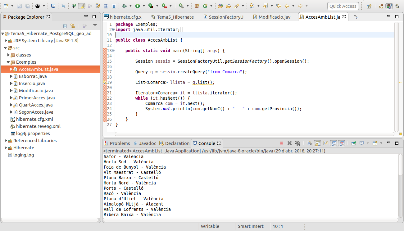 List<Comarca> llista = q.list();