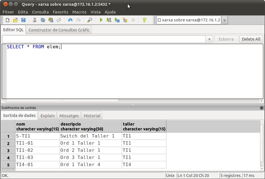 Els següents exemples els farem sobre l'usuari i Base de Dades propi de cadascun rxx.