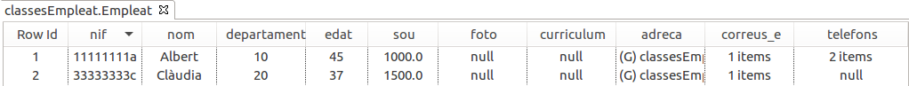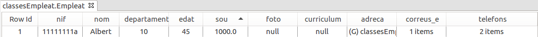 Treballarem sobre un exemple anterior, el dels empleats, però incorporant més dades, com els telèfons, els correus electrònics, etc, per veure que podem guardar una classe un poc més complicada en la BD Orientada a Objectes.