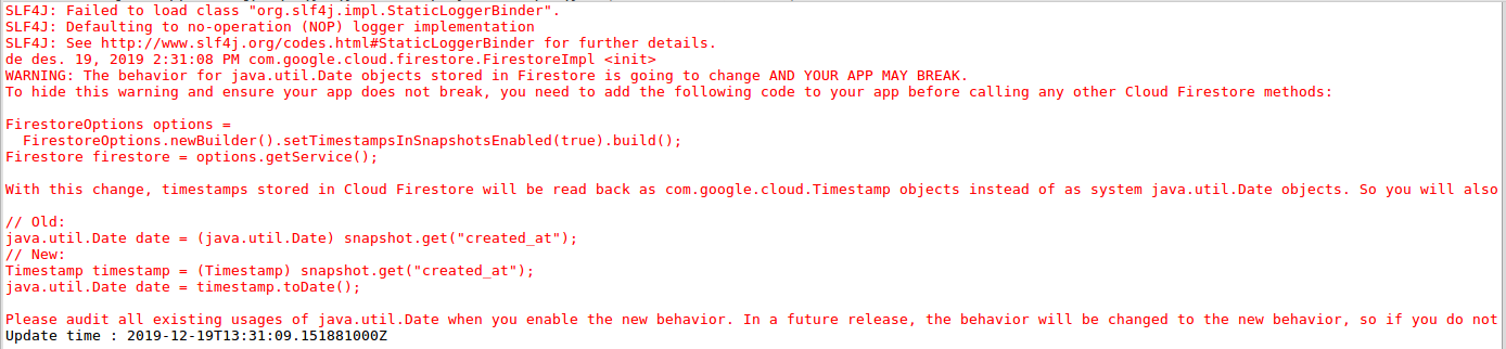 System.out.println("Update time : " + result.get().getUpdateTime());