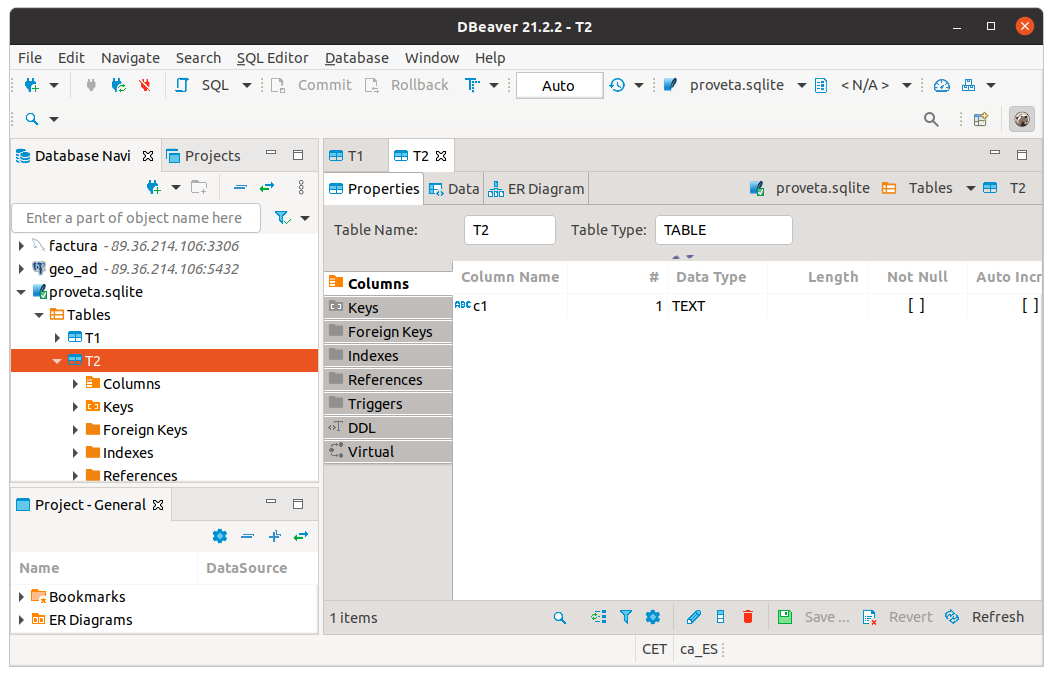 Mirem aquest exemple, en qual crearem una taula molt senzilla en la Base de Dades SQLite proveta.sqlite.