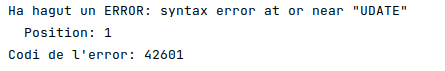 - 42601: Erro de sintaxi (la sentència SQL és incorrecta)