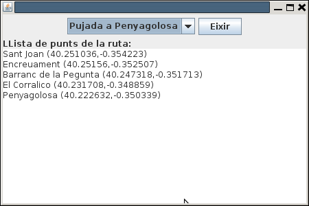 - Un JComboBox anomenat combo on voldrem visualitzar les comarques.