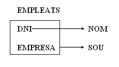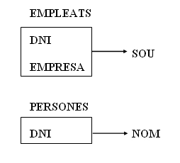 Exemple: Taula amb les persones que treballen en diverses empreses amb el sou corresponent, amb els atributs:DNI , NOM , EMPRESA , SOU