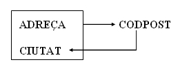 A més a més, què succeeix si s'elimina la tupla amb adreça "C/ Sol, 4" de "Vinaròs" i la tupla "C/ Mar, 4" de "Vinaròs"? El que ocorre és que desapareix la relació entre el codi postal "12500" i "Vinaròs" i potser aquestes dades haurien de mantenir-se.