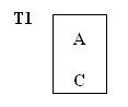 A) Una primera taula T1 amb tots els atributs, excepte B (el que formava part de la clau principal); ara formarà part de la clau principal C.