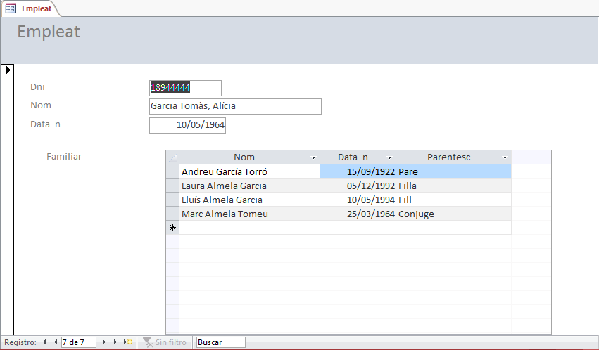 1.20) Construir un formulari amb aquest aspecte guardeu-lo com Empleat-Familiar: