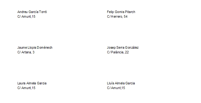 1.23) Crear un informe d'etiquetes on ha de constar el nom i l'adreça de tots els familiars (l'adreça d'un familiar l'obtenim per l'empleat). Donar-li el nom Etiquetes Familiars