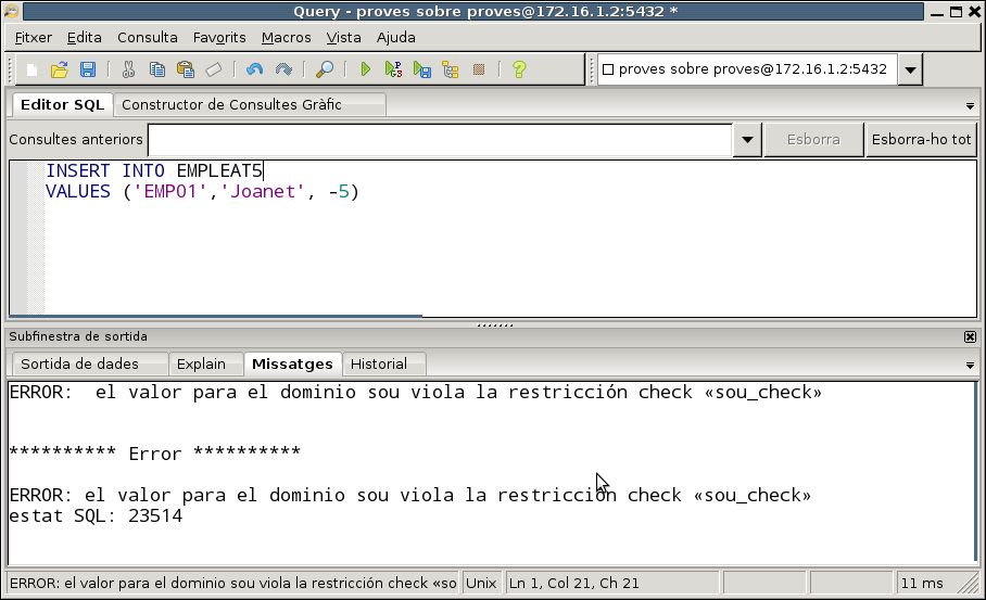 Si intentem introduir la dada del sou malament (per exemple posant-lo negatiu) veurem que dóna error.