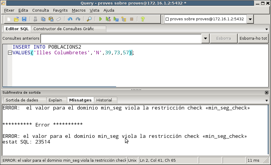 Un altre exemple, que farem sobre la Base de Dades proves, encara que és un exemple basat en les taules que teníem en geo.