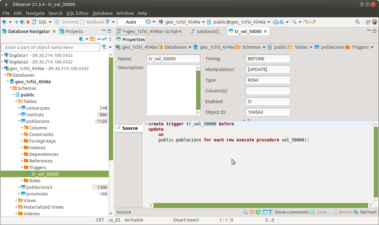 En DBeaver veurem els triggers en la taula a la qual afecten.