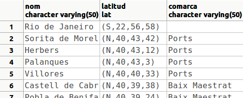 I fins i tot, si fóra el cas, podríem definir el camp latitud com a clau principal, que no és el cas perquè ja és nom.