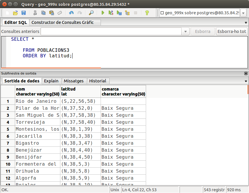ORDER BY latitud DESC;