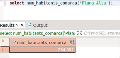 7.10.- Fes una funció anomenada NUM_HABITANTS_COMARCA que accepte un paràmetre de tipus text, i torne el número d'habitants d'eixa comarca